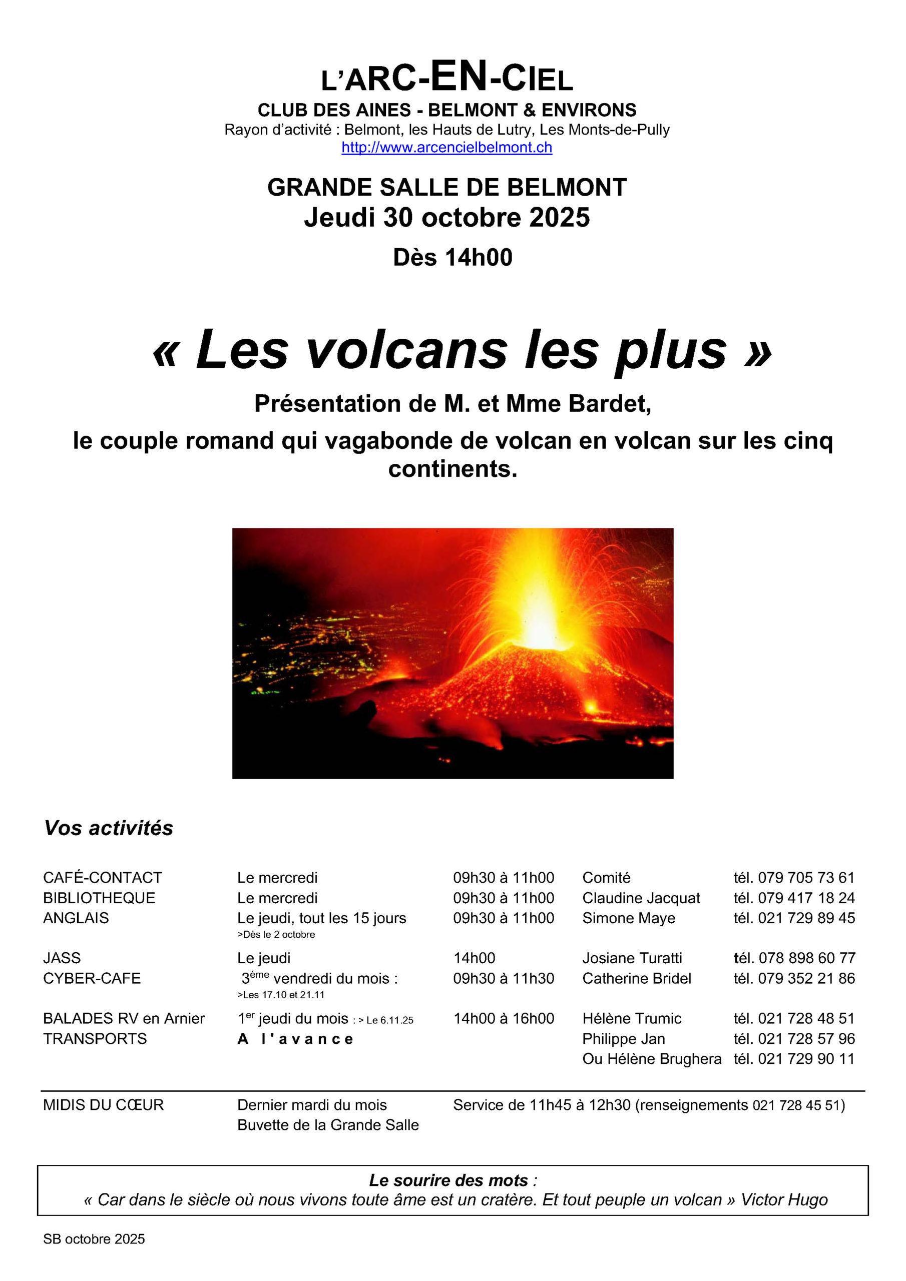 Et voici déjà notre prochaine rencontre fin octobre, un conférencier que vous avez déjà apprécié, Eric Rochat, alors venez nombreuses et nombreux !
